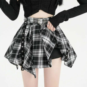 Midnight Tartan Ruched Alt Skirt