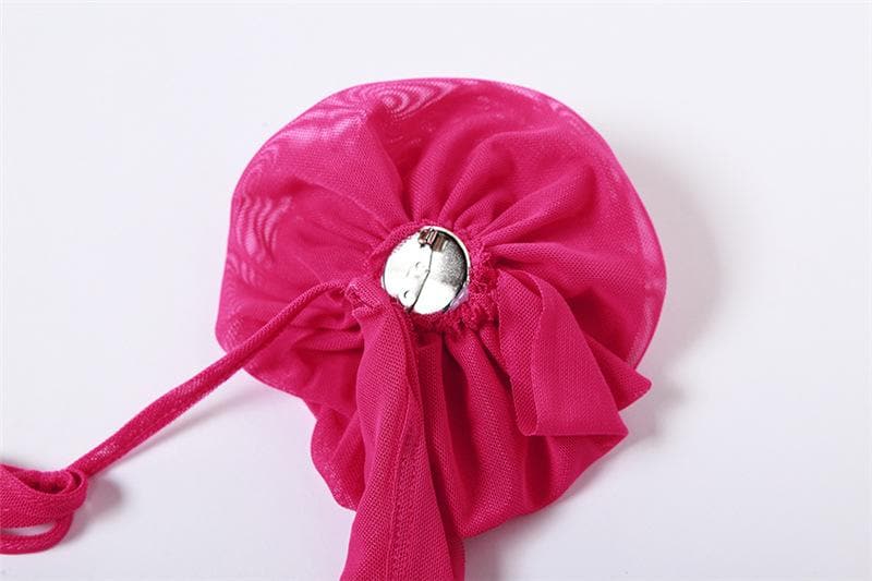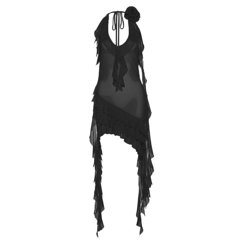 Be the first to review “See through halter sheer mesh ruffle flower applique mini dress”